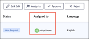You can assign assets in a request to yourself or to other approvers. Only one approver can be assigned to each asset. For unassigned assets, the approver who approves or rejects an asset is automatically assigned to that asset’s upload request.